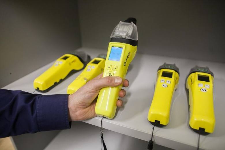Rendőrségi használatra alkalmas gyorsteszter alkoholdetektor.