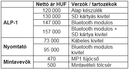 Az ALP-1 tárolja a mért értékeket, amelyek vezetékes vagy opcionálisan bluetooth kapcsolaton keresztül kinyomtathatók.